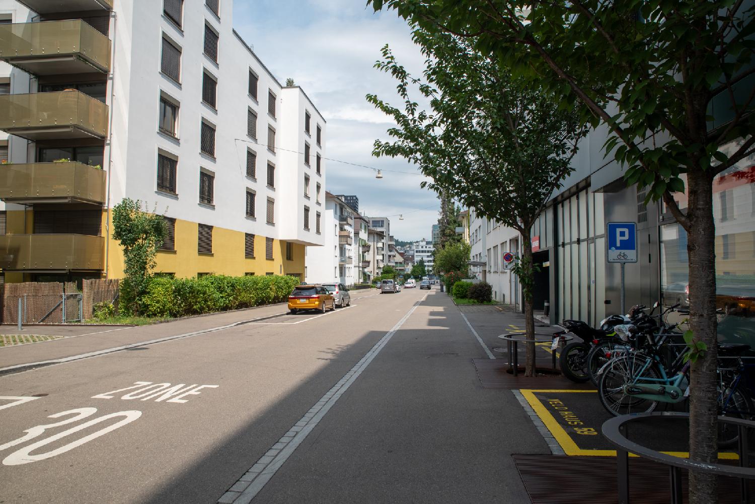 Bachmattstrasse goes from Hohlstrasse to Badenerstrasse. It is named after the older location name designing the fields (Matten) near the local stream (Bach).