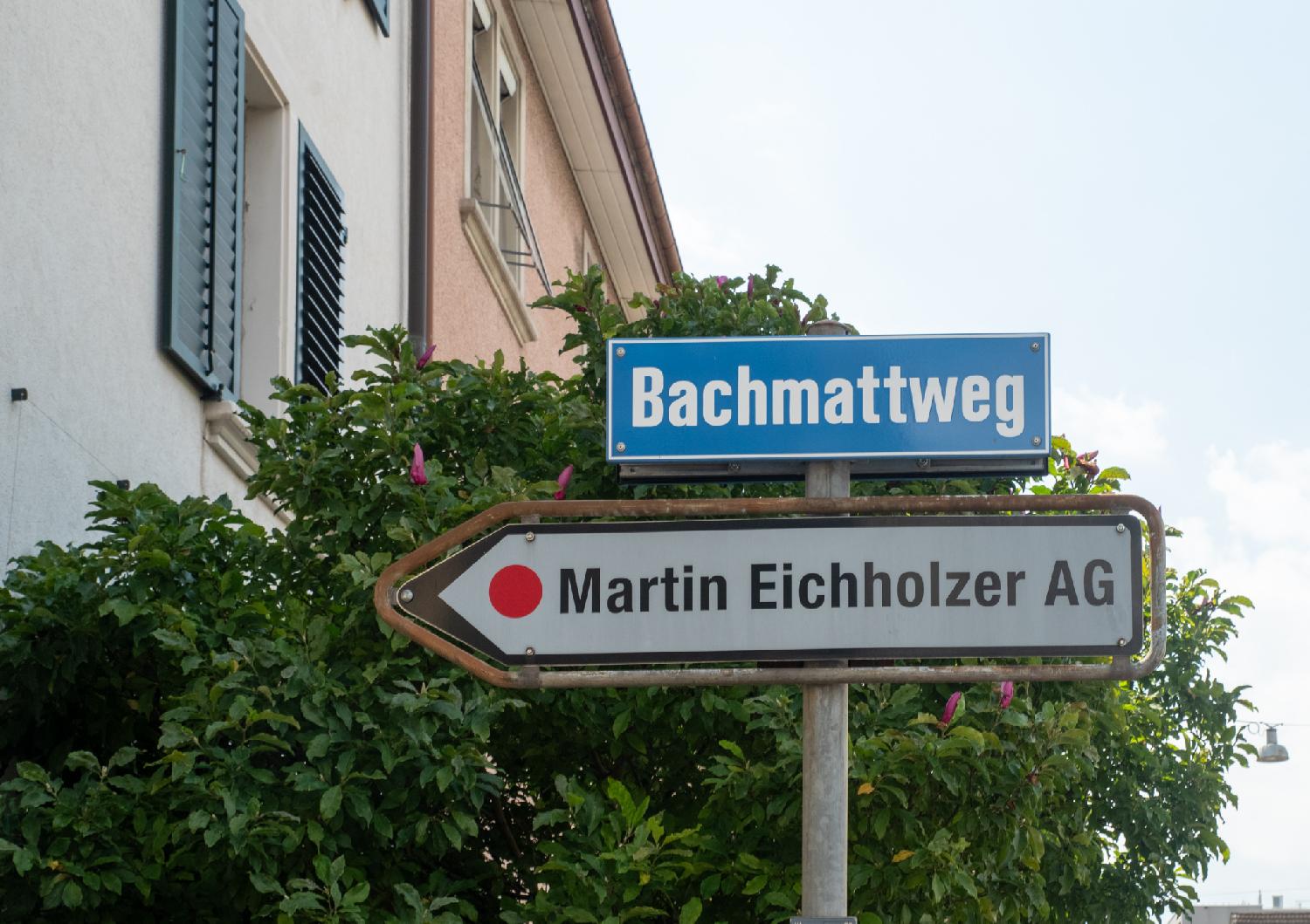 Bachmattweg goes from Bachmattstrasse to, well, also Bachmattstrasse, but a bit further away. It is named after the older location name designing the fields (Matten) near the local stream (Bach).